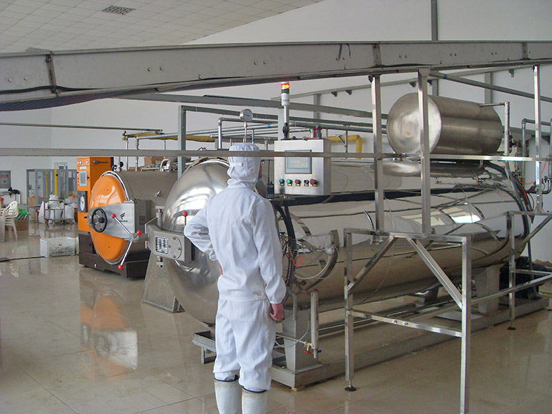 产品概述1)高温短时间灭菌。采用双罐热水循环进行杀菌,事先将杀菌罐内的水加热到灭菌所要求的温度,从而缩短了灭菌时间,提高了工作效率。2)节约能源,提高产量。在杀菌过程中使用的工作介质可循环使用,节省了
